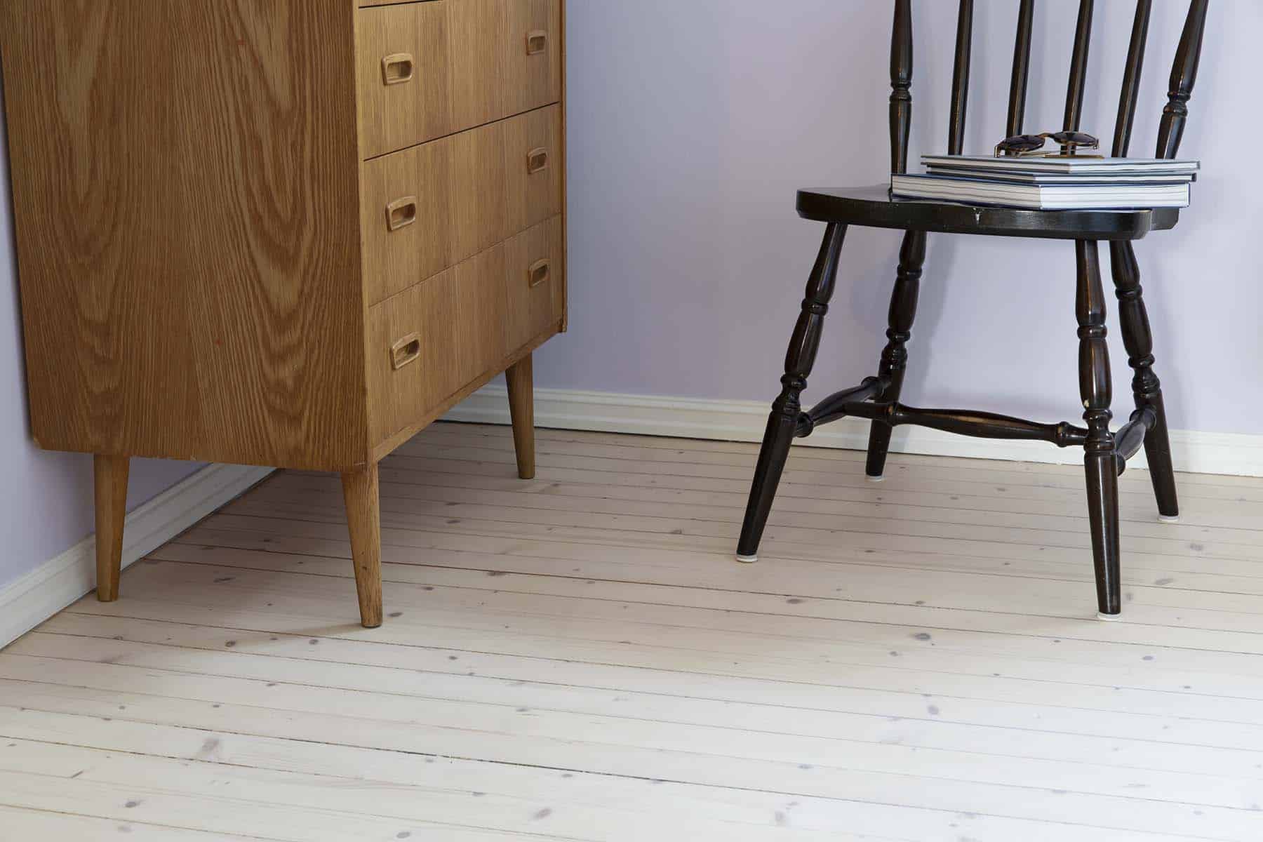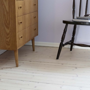 Her får du lettstelte lyst gulv som er enkle å renholde og som heller ikke krever vedlikehold. Perfekt for deg som ønsker et flott lyst gulv, men som ikke vil bruke mye tid på dem. Du får en matt, lakkert overflate (ca 20 glans) som tåler mye slitasje og som har god motstandskraft mot søl og kjemikalier. Lakken er sterk, men husk at furu er et mykt treslag – etter hvert vil du for eksempel se hakk der treverket har gitt etter og lakken fortsatt er intakt.